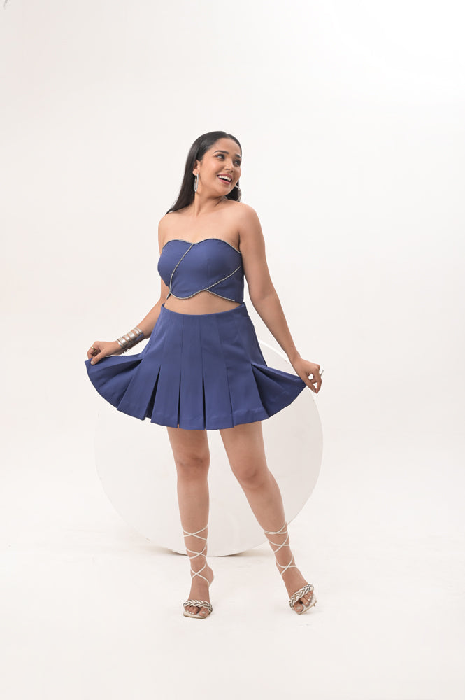 Description : - Rachel set comes with an embellished bustier and a box pleat skirt. Crafted with a stretchable crepe fabric, the outfit is comfortable yet stylish. It can also be paired with Rachel Flower jacket.
